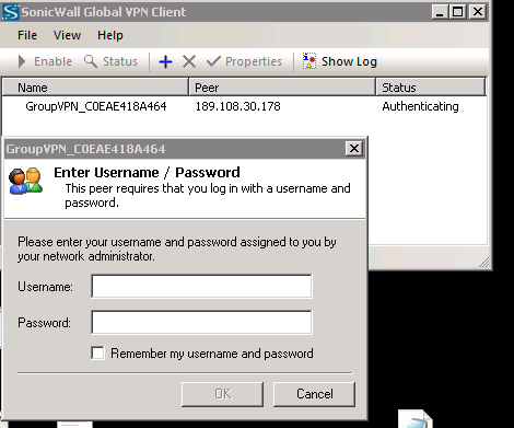 3.1. Clique em Enable e a VPN já está estabelecida ou solicitará usuário e senha.